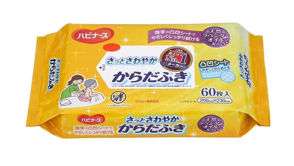 おしりにも使える厚手シートで、よじれずしっかり拭けるから、らくに拭きとれます。