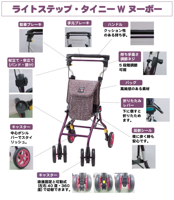| ・デラックスカーブハンドル仕様で、楽に握れ操作性が良いです。 ・後部に可愛いボーチバッグ装備しております。 |