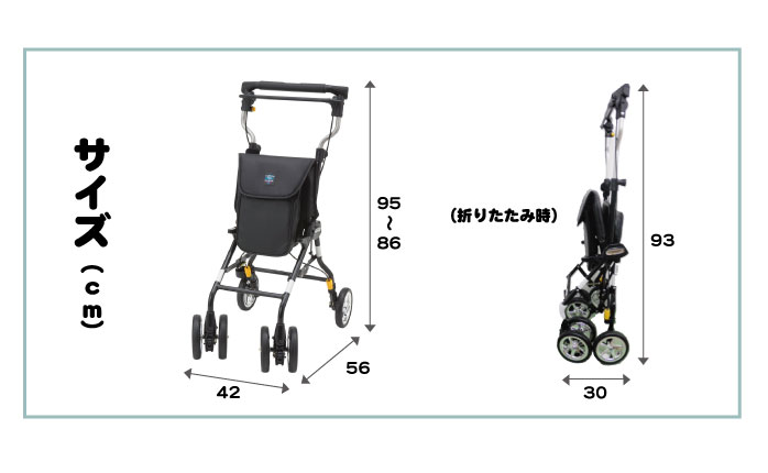 | 幅42×奥行56×高さ86・89・92・95cm (折りたたみ時:幅42×奥行30×高さ93cm) |