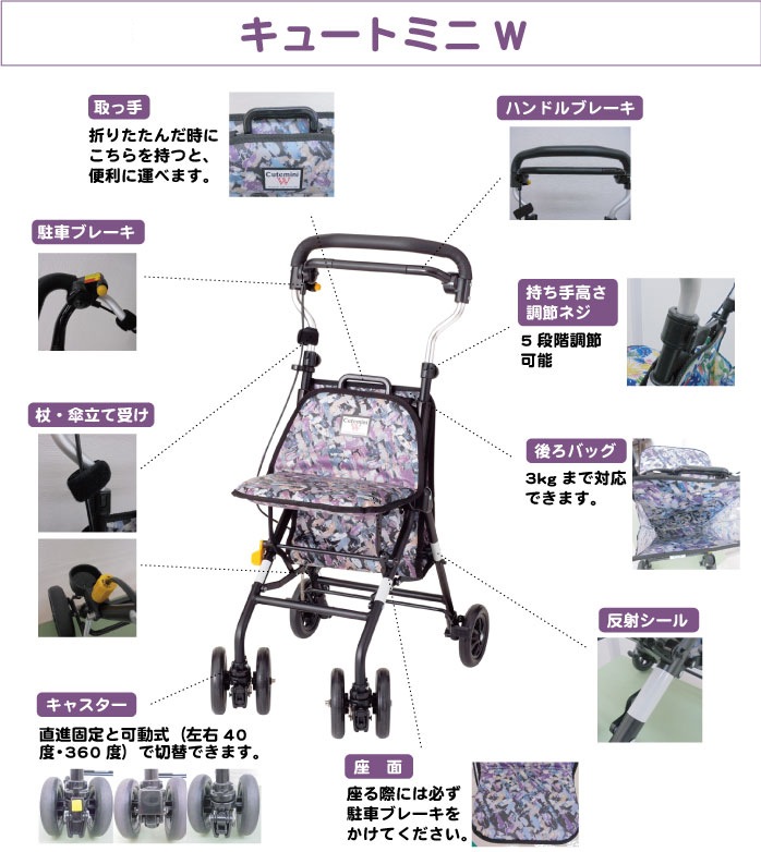 | ・カーブハンドル仕様で、楽に握れ、荷物がたくさん入るスマートカーです。 ・簡単開閉式で、コンパクトに収納ができ、持ち運びに最適です。 |